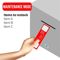 2. Restocker will access Vendron Cloud to check what to restock, and proceed to prepare needed stocks. Upon arriving at the Ballot Box, the restocker will put a Red Tag (Maintenance) into the ballot box, this will switch the status into “Maintenance Mode”.